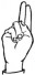 На ћирилици написано АЛЕКСАНДРА КЛЕМЕНОВИЋ састоји се из 20 слова [?]. Исписано ћириличном једноручном азбуком за глувонеме: